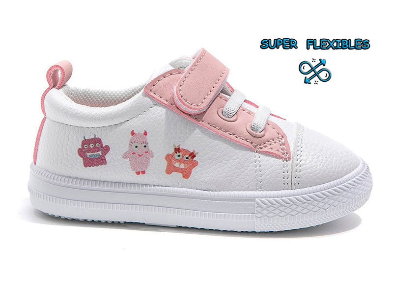 Basket Bébé Fille Blanche & Rose – Super Flex | Modèle J752NA