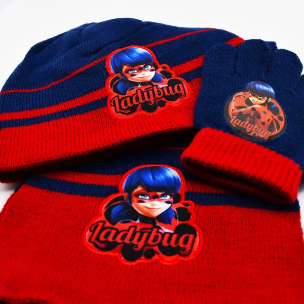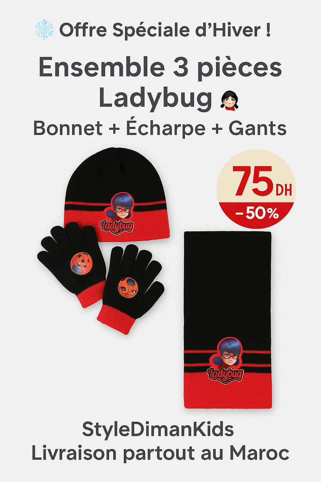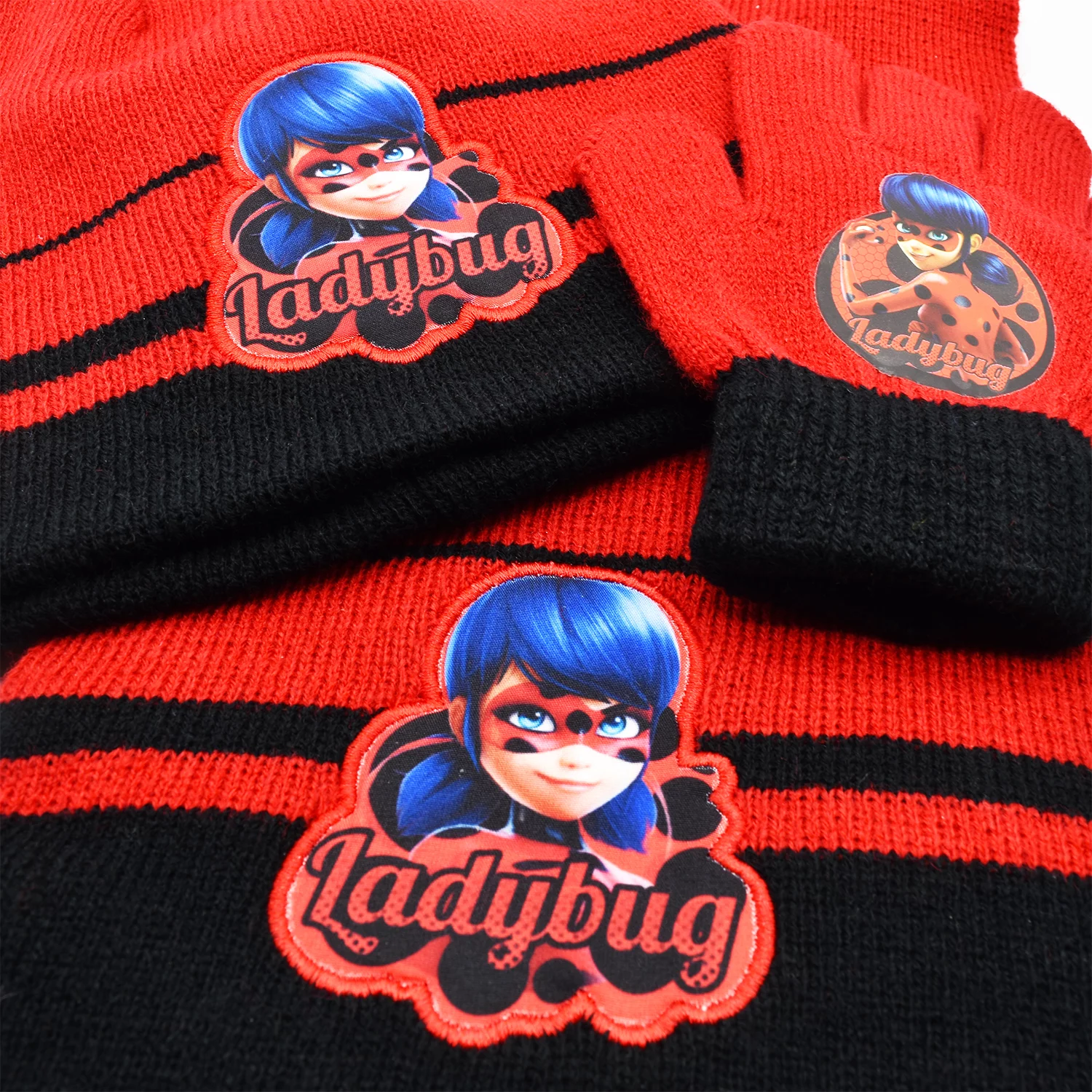 Ensemble Miraculous Ladybug – 3 pièces : Bonnet + Écharpe + Gants (Taille standard enfants 3-7 ans)